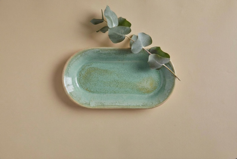 מגש אליפסה קטן מקרמיקה בעבודת יד.